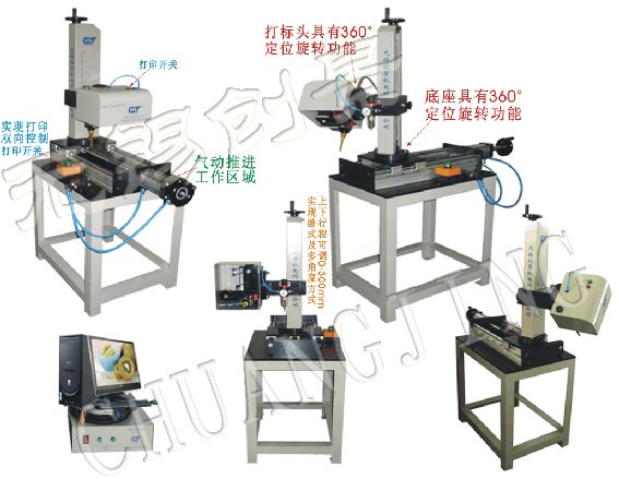 A9 C是一款根據(jù)客戶實(shí)際現(xiàn)場(chǎng)設(shè)計(jì)各種操控臺(tái)。配備自動(dòng)定時(shí)氣動(dòng)限位裝夾。二維機(jī)構(gòu)采用線性鋼制運(yùn)動(dòng)導(dǎo)軌、自封閉、自潤(rùn)滑軸承、可靠性高,耐磨;打印標(biāo)頭任意旋轉(zhuǎn),適合在產(chǎn)品種類繁多的平面和微弧面及圓柱錐型工件360度打標(biāo),柱體配備三軸聯(lián)動(dòng)夾具圓周打印,實(shí)現(xiàn)一機(jī)多用的高效率